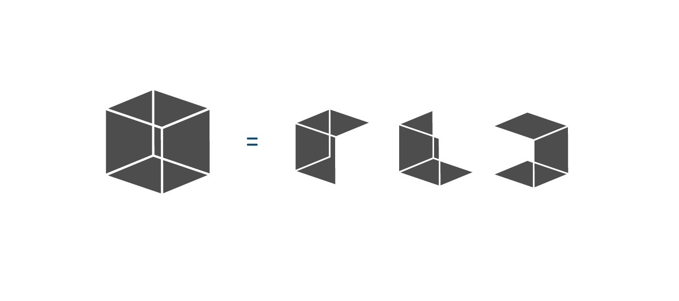 El cubo como elemento que contiene y unifica, se utiliza para representar el espacio donde podemos encontrar el apoyo y las tecnologías que el cliente requiere. A su vez el cubo brinda la posibilidad de extraer diversas formas; representando cada una de las ferreterías y al unirlas se ilustra cómo una gran familia.